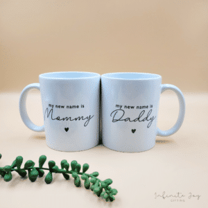 Perfect for new mom and dad to be! Consists of 2 x ceramic printed mugs.