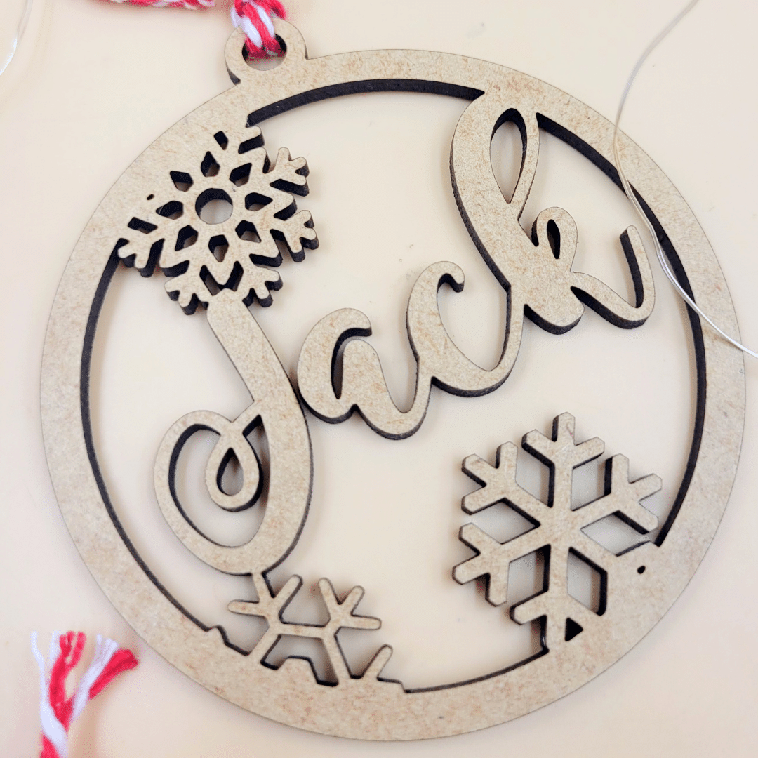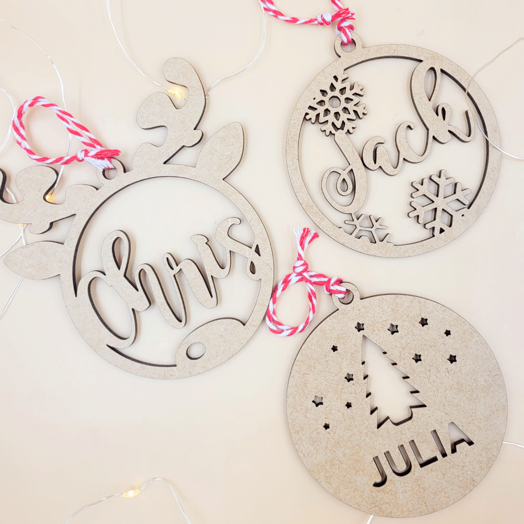 Each piece is laser-cut from MDF wood, creating a timeless ornament that celebrates the joy of Christmas.