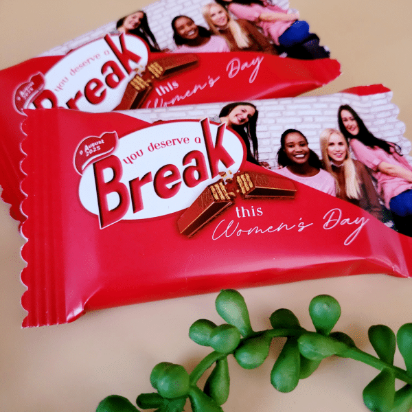 This custom chocolate (4-finger KitKat) comes in a tailor-made wrapper featuring a heartfelt Women’s Day message. A simple, sweet way to show recognition and gratitude and to celebrate the strength, elegance, and resilience of the women in your team or in your life.