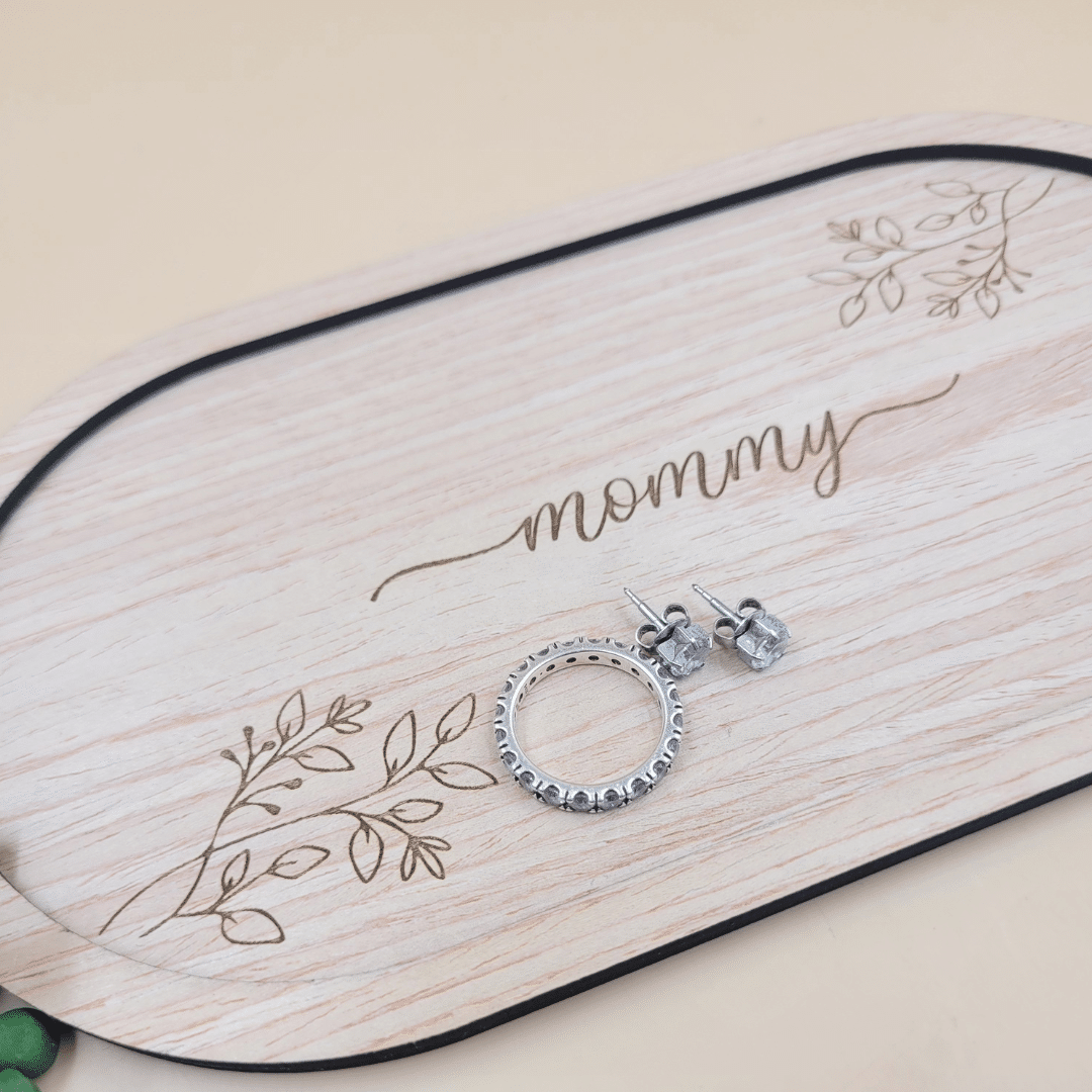 Crafted from natural wood and delicately laser cut and engraved, this tray is perfect for holding jewellery, keys, or small personal items—keeping everything organised while adding a meaningful touch to her space.