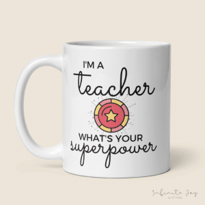 | Choose Type | Teacher (name) with flowers (Mrs wilson), Teacher Mode ON, Don't Make Me Use My Teacher Voice, I'll Just Wait Until it's Quiet, Teachers Plant Seeds that Grow Forever, Teachers Plant Seeds that Grow Forever (with name) colour, Tea-riffic, Big Heart, Tiny Humans, Superhero, Teacher-Fuel, Teach Love Inspire |