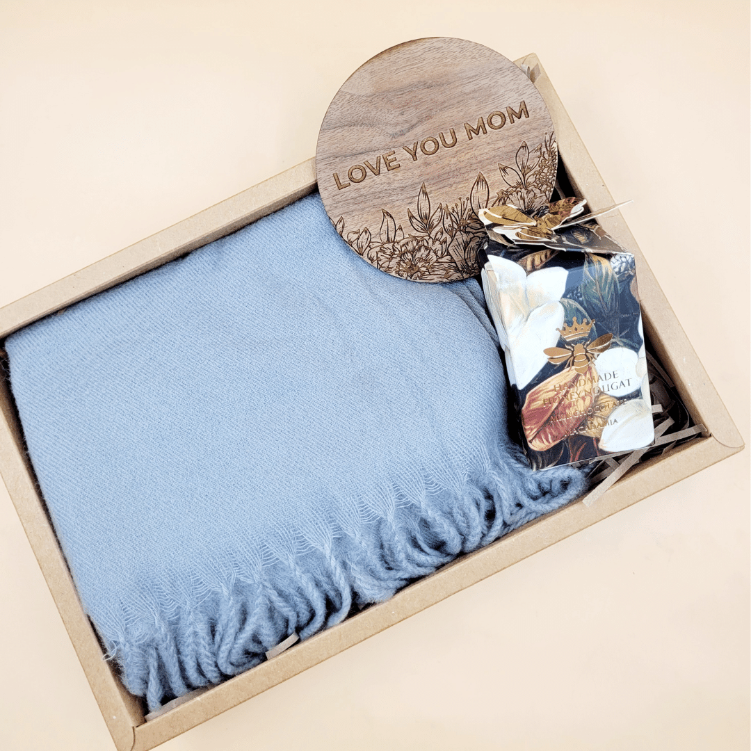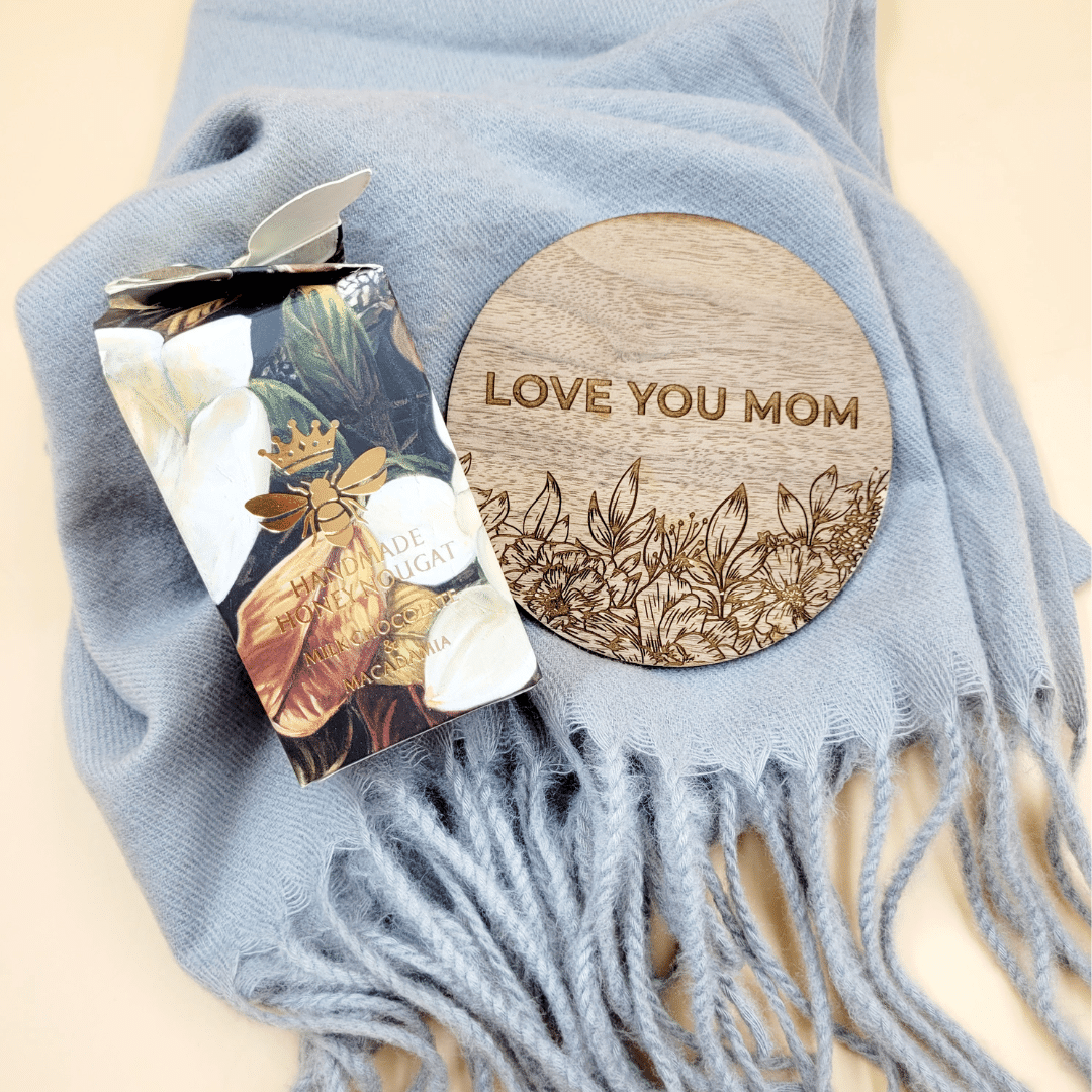 Winter Mom Gift Box | Scarf, Nougat & Personalised Coaster for Mom